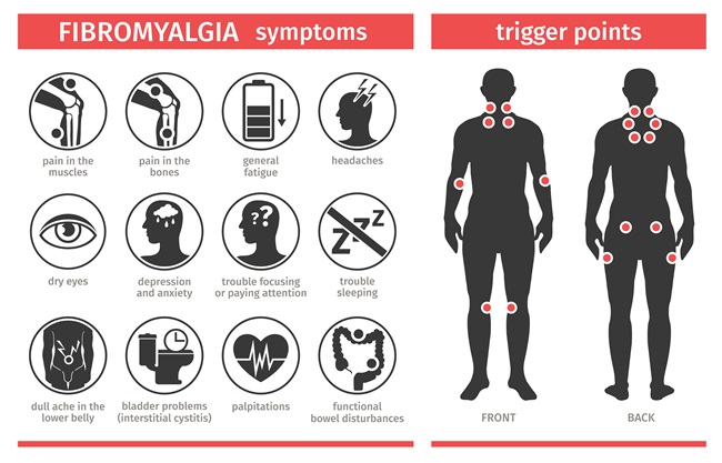 : 섬유근육통은 3개월 이상 전신의 근골격계 통증을 호소하고 진찰 시 18개의 특정한 신체 부위 중에 11군데 이상에서 유의한 압통을 호소할 경우에 진단을 내릴 수 있습니다. 하지만 모든 섬유근육통 환자가 이러한 기준에 맞지는 않습니다.